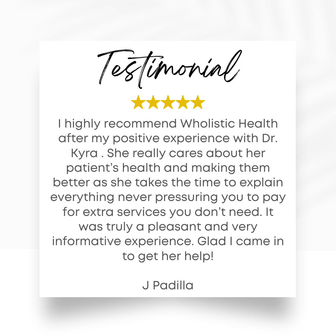 Kyra Gutierrez, DC, is the owner of Wholistic Health and a Doctor of Chiropractic.