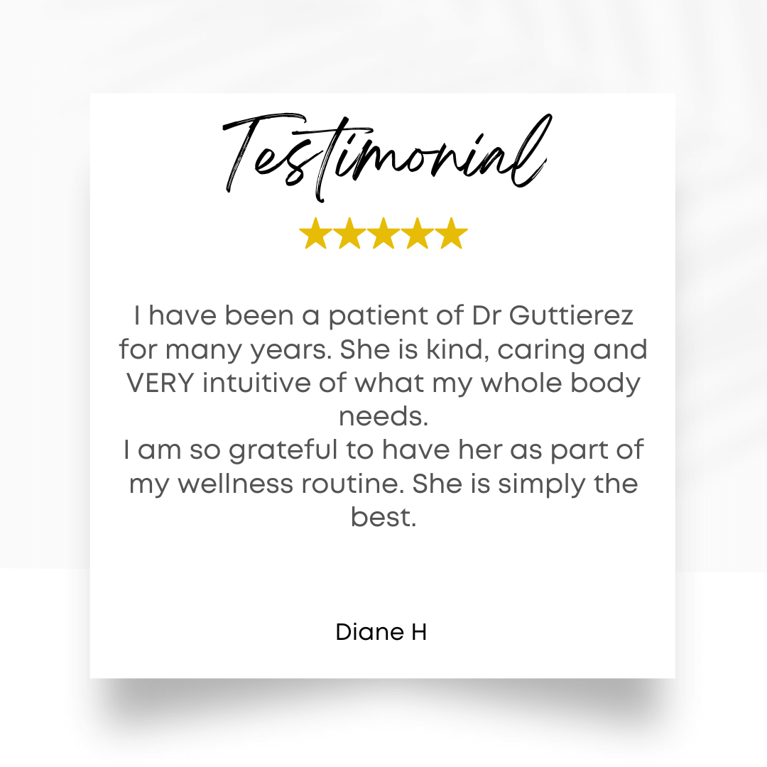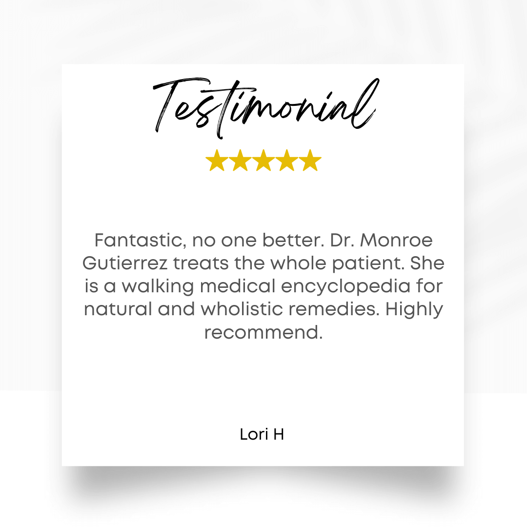 Before becoming a doctor, Dr. Gutierrez taught high school chemistry. Her career path changed when her oldest daughter developed food allergies—and she saw firsthand how natural care and nutrition could transform health. That experience shaped the way she practices today. With more than 19 years in practice, Dr. Gutierrez has helped countless individuals and families feel better, function better, and thrive with alternative, evidence-informed care.