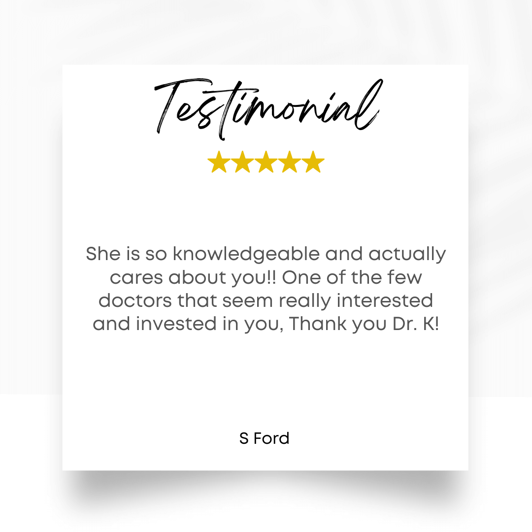 She’s known for compassionate, whole-person care that blends functional medicine principles, chiropractic, acupuncture, and targeted nutrition—helping patients get to the root of what’s driving their symptoms.